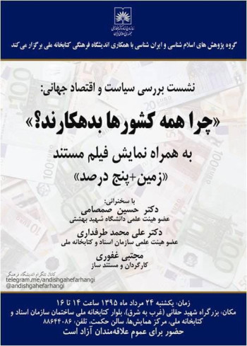 زمان برگزاری:۱۳۹۵/۰۵/۲۴؛ ساعت ۱۴ تا ۱۶